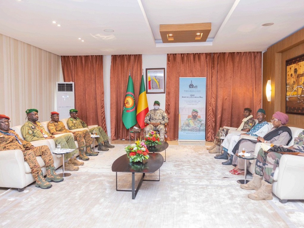 The defense ministers of the member countries of the Confederation of Sahel States (AES) met this Friday in Bamako for a high-level strategic consultation. On this occasion, they were received by General Assimi Goïta, President of Mali and current Chair of the AES, who provided them with clear directives to strengthen security cooperation between the three countries.