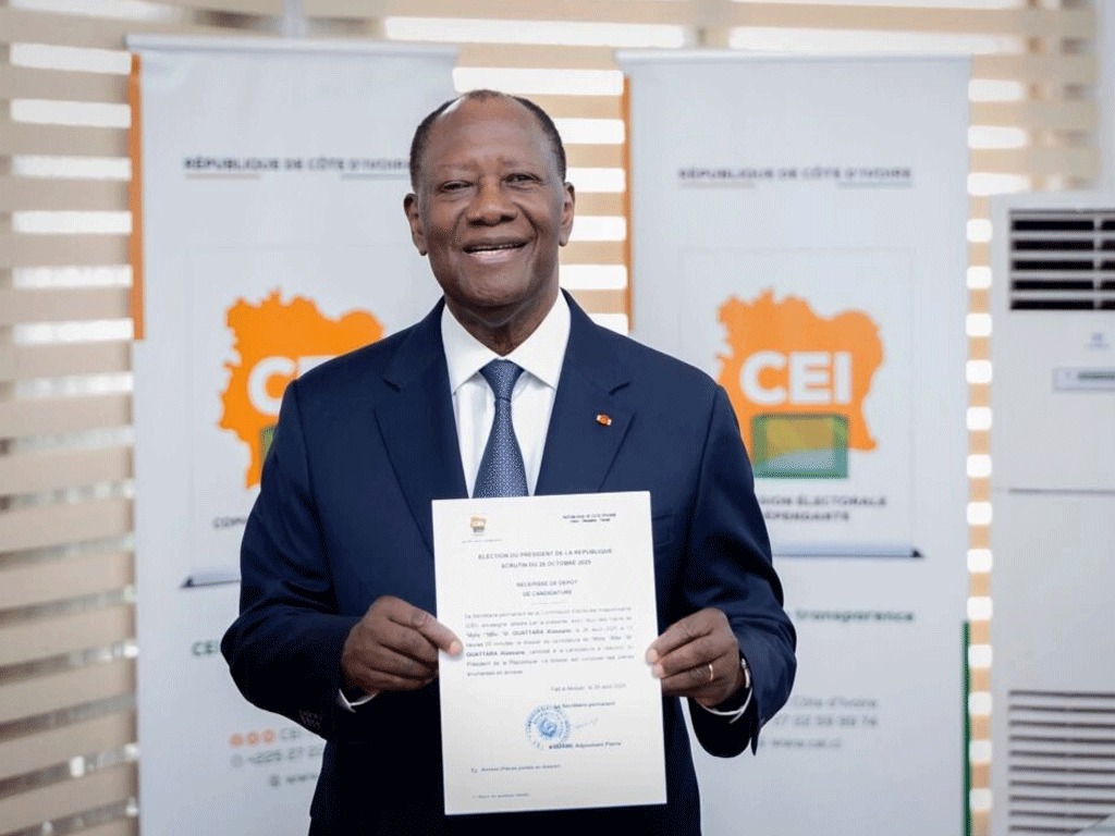 Abidjan, August 26, 2025 – Ivorian President Alassane Ouattara submitted his candidacy for the October 25, 2025, presidential election on Tuesday at the Independent Electoral Commission (CEI) headquarters in Cocody. He is seeking a fourth term, a move strongly contested by the opposition, which deems it “unconstitutional”.